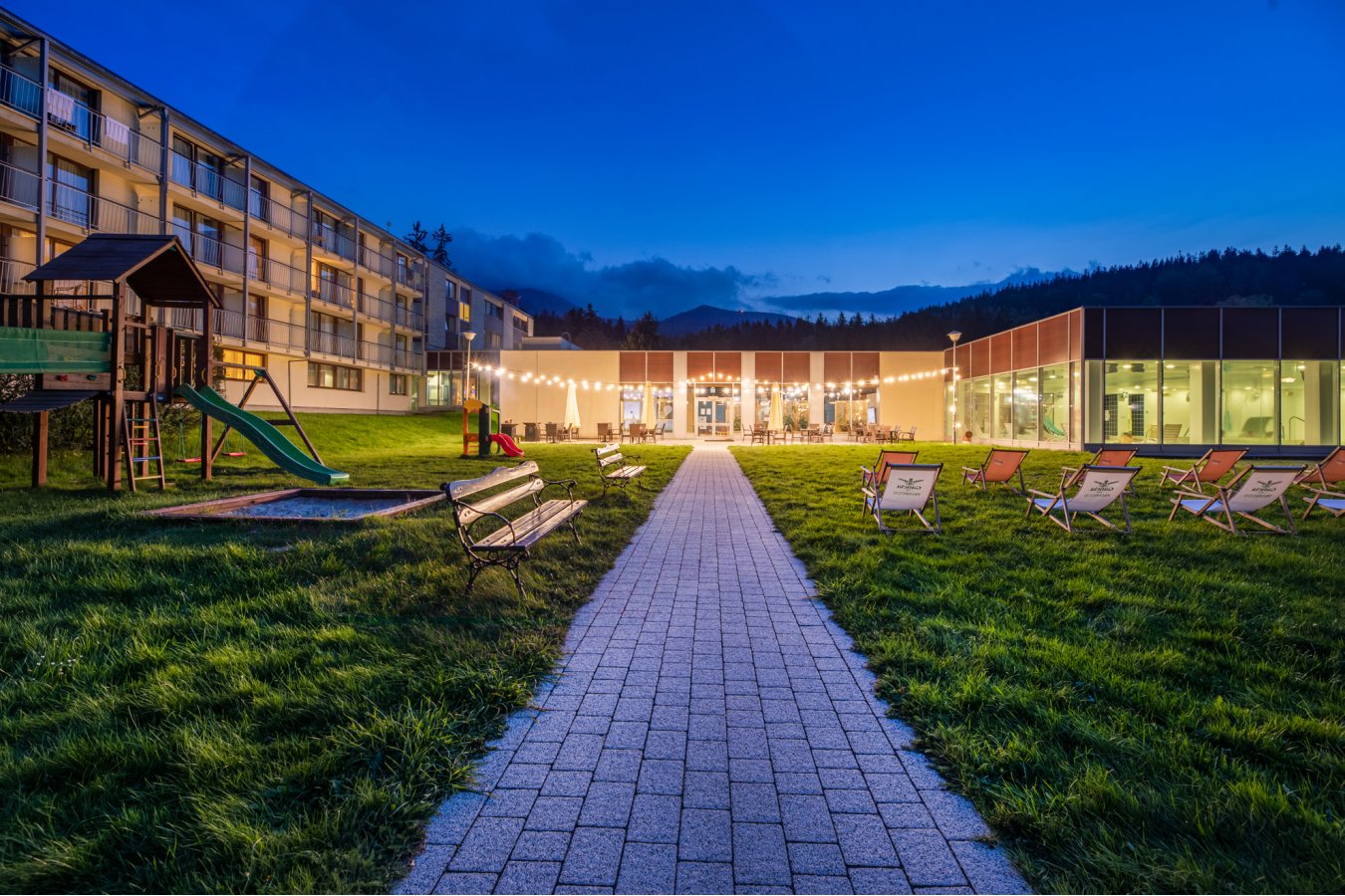 papėdėje, eglyno apsuptyje, tik 300m nuo Karpačo centro. Pėsčiųjų žaliosios viešbučio zonos, žaidimų